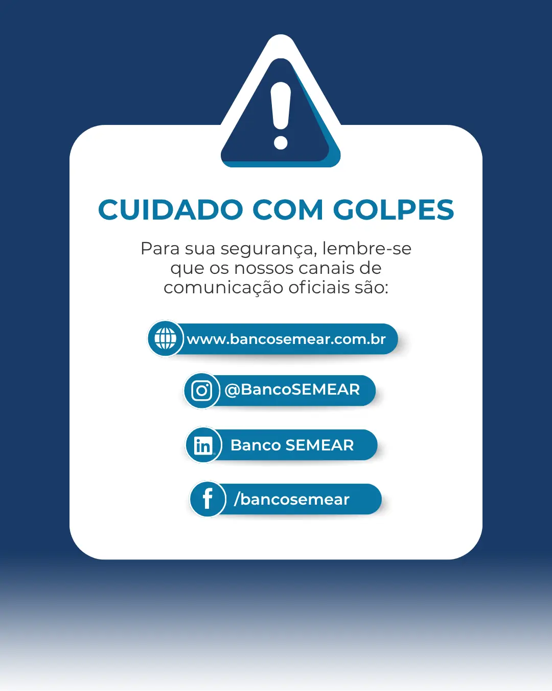 Aqui no Banco SEMEAR nossas soluções financeiras são desenvolvidas com o foco em atender às necessidades dos nossos clientes, proporcionando suporte e inovação para que possam prosperar em um mercado cada vez mais desafiador.